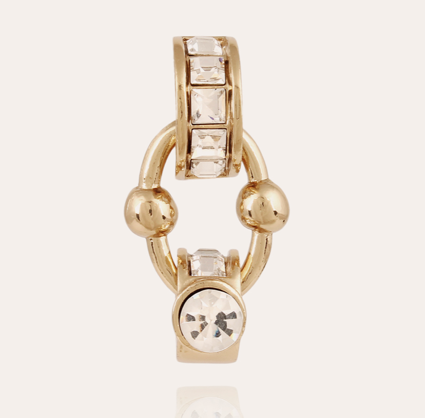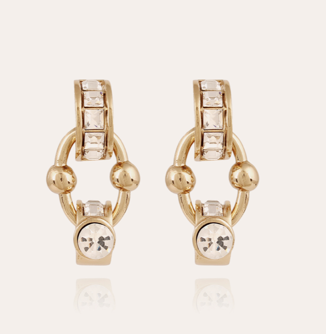 Gold plated earrings composed of two mobile links and adorned with strass of crystal color.