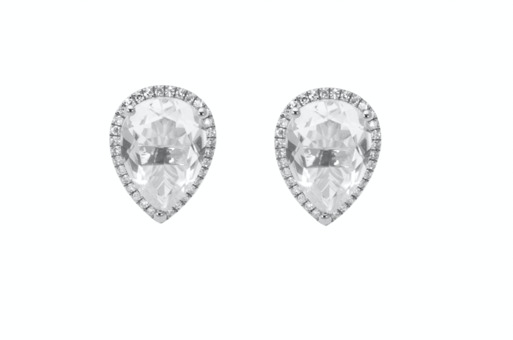 18K Gold Diamond and White Topaz Large Tear Drop Stud Earrings